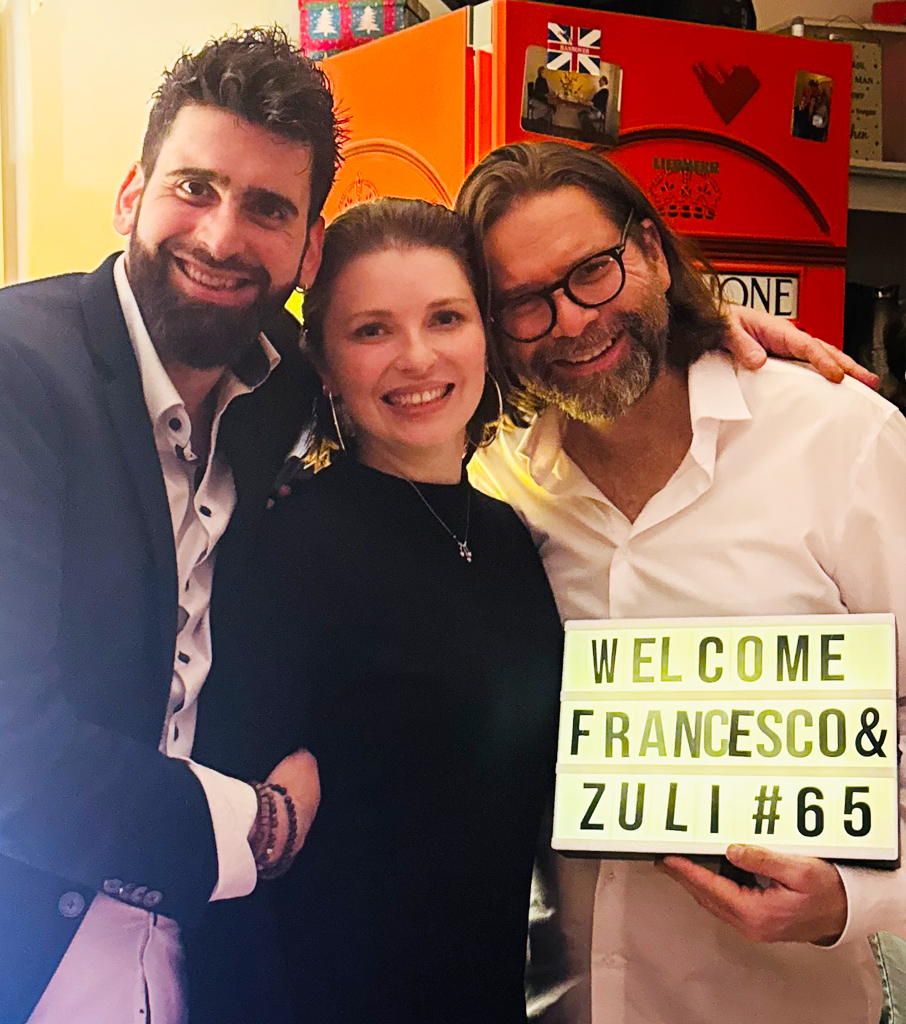 Francesco ist zurück. Manche von euch haben ihn schon kennengelernt – im Duo mit Cynthia Dahlke oder an der Seite von Darre. Jetzt gibt es eine neue Kombination, eine Geschichte aus Musik und Liebe. Und die geht so: Sie aus Russland, er aus Italien. Kennengelernt haben sich beide in einer Karaoke Bar. Sie fand seine Stimme toll, er ihre. Sie war von seiner Performance von Linkin ́Parks „In the end“ fasziniert, er – sagt sie später – fand sie wunderschön. Es wurden Lieblingssongs ausgetauscht, Nachrichten und Aufnahmen hin- und hergeschickt.